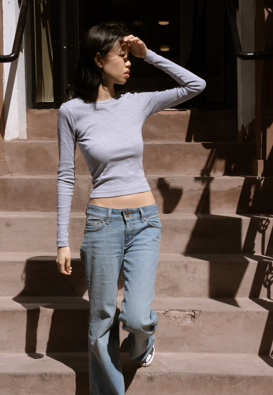This top is made of our 100% cotton and features a crew neckline with a binding finish and long sleeves. This top has a mid to full length fit and exudes minimal elegance with its refined and tested fit.